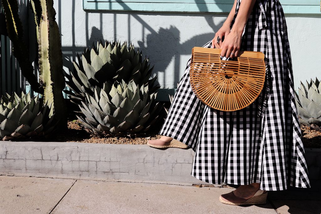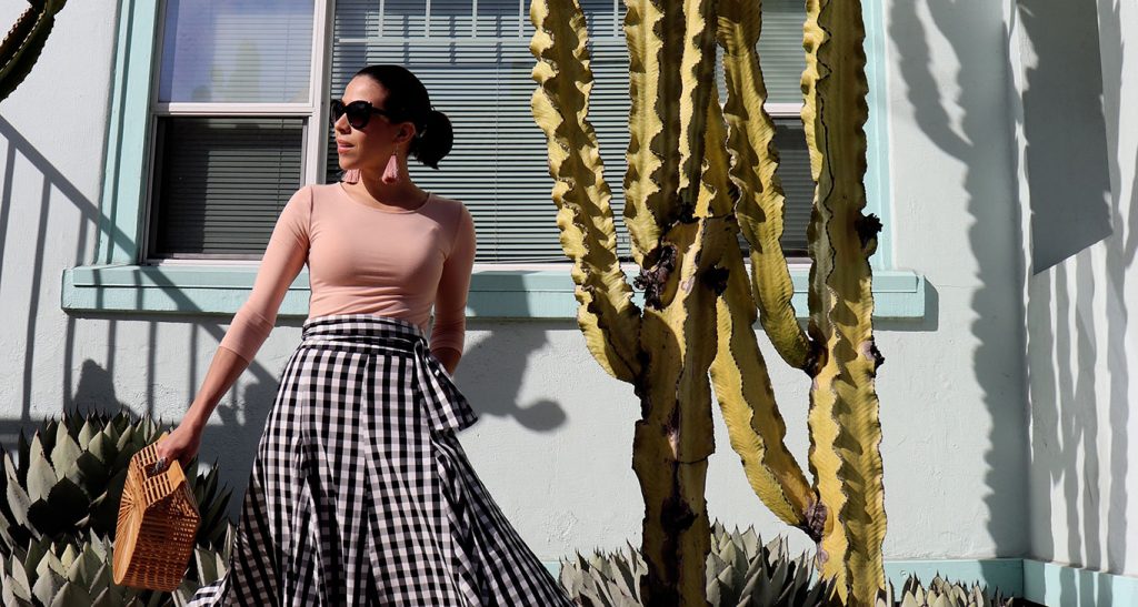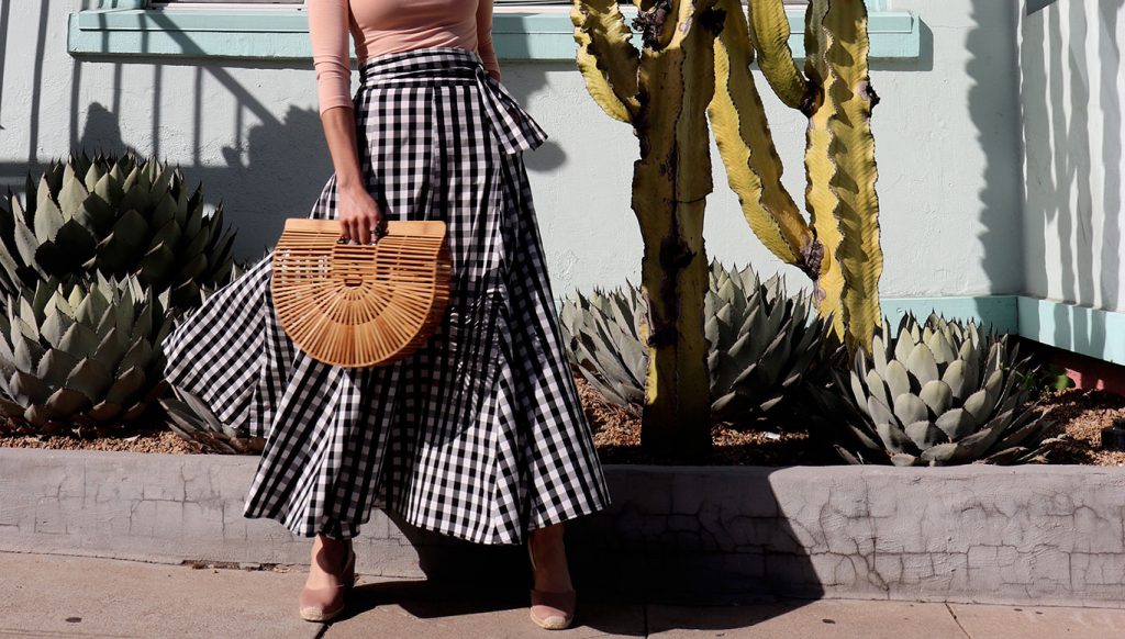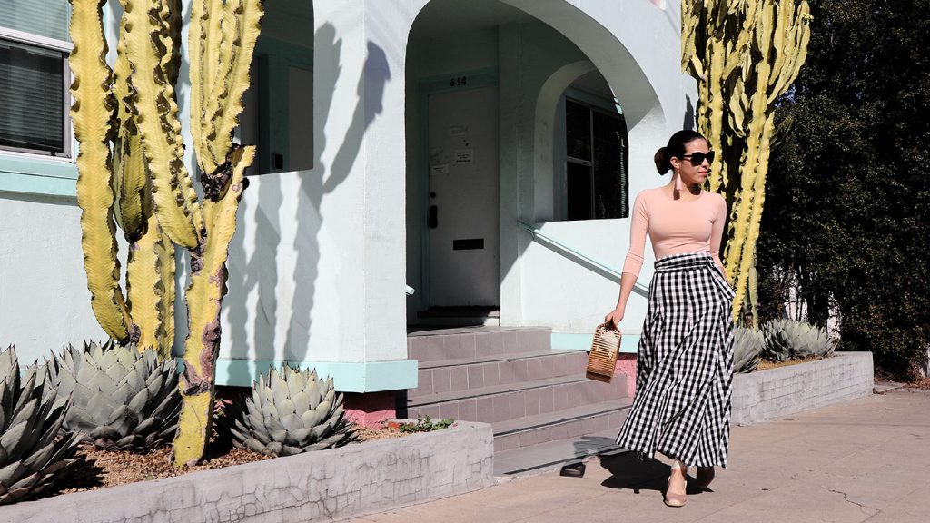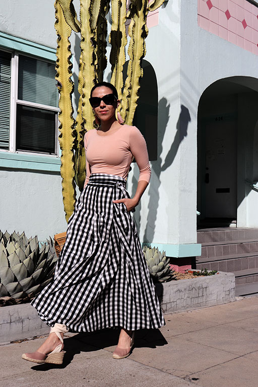 Blush top and long black-white gingham skirt is a cool combo! Love the wedge espadrilles! I made a post on my favorite espadrilles to try this 2018, you can check it right now, over here: http://standoutlook.com/best-espadrilles-to-try-next-summer-2018/ Hope you like this post too, or maybe you will find some inspiring shots!